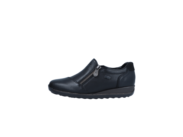 Slipper aus Glattleder,ein seitlicher Reißverschluss ermöglicht einen schnellen und einfachen Einstieg. Der Schuh verfügt über eine robuste Profilsohle, die mit gutem Grip für einen sicheren Tritt überzeugt. Dank der schmalen Passform sitzt der Schuh angenehm eng ohne zu zwicken. Die RiekerTEX Technologie hält die Füße bei kalt-feuchtem Wetter trocken.