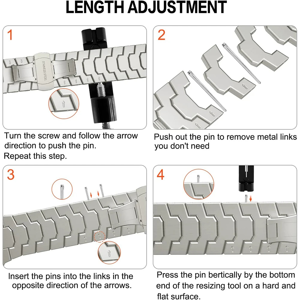 【Einfache Größenänderung】Das Band wird mit einem kleinen Link Removal Tool geliefert. Es ist super einfach, das Band damit anzupassen. Passend für Männer und Frauen mit 5.5"-9.1 (140-230mm) Handgelenken, wenn Sie zusätzliche Links benötigen, kommen Sie bitte zu uns.