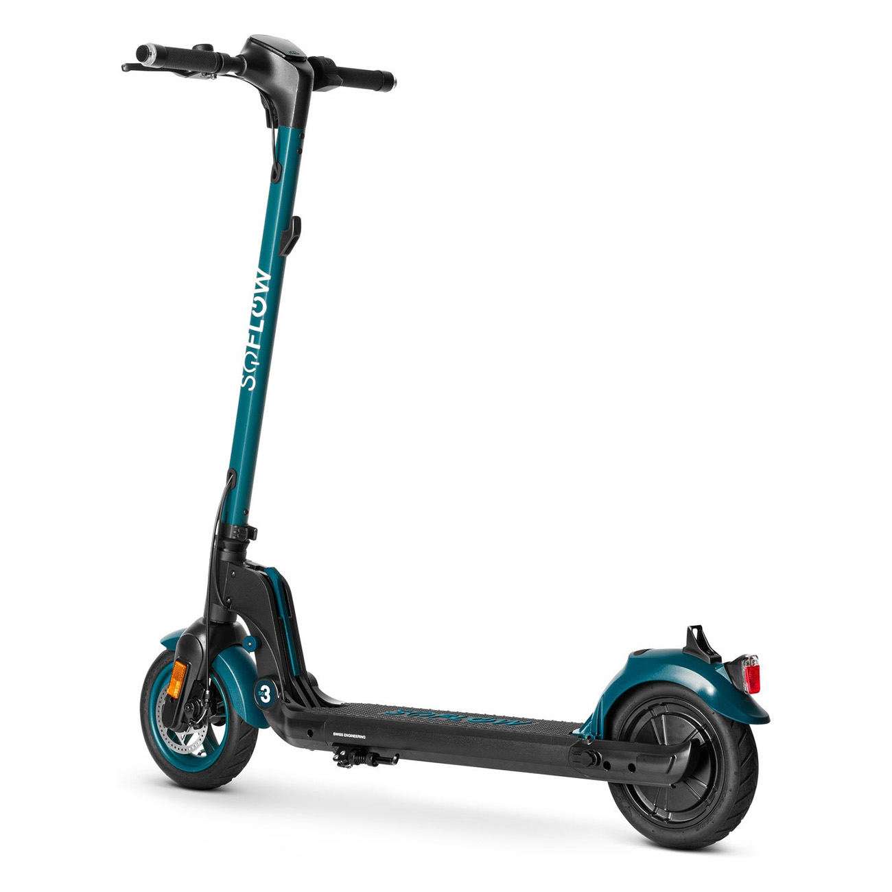 Der neue SO3 Pro wurde von SoFlow durch eine 10.5 Ah-Batterie erweitert. Er verfügt über einen 350 Watt Motor, hat eine Reichweite von bis zu 35 Kilometern und bewältigt Steigungen von bis zu 18 % mühelos. Für mehr Sicherheit beim Abbiegen bietet der SO3 Pro neu Blinker an der Lenkstange. Der SO3 Pro bietet eine Scheibenbremse am Vorderrad, eine elektrische Motorenbremse mit Energierückgewinnung am Hinterrad sowie Vorder- und Rücklicht. Die 8.5 Zoll Luftreifen bieten dem Fahrer auch bei Unebenheiten ein gutes Fahrgefühl.