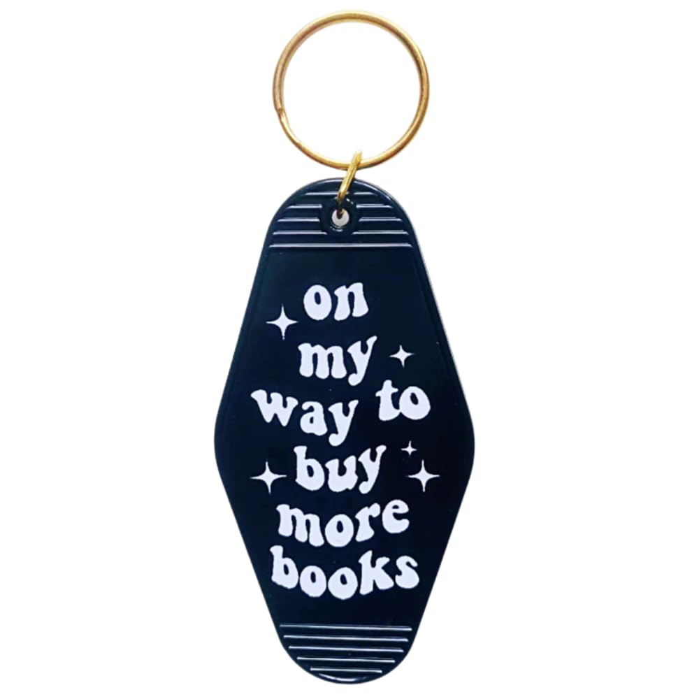 - This unique keychain features a charming print that proudly states, On my way to buy more books - expressing your love for books in a fun and quirky way.