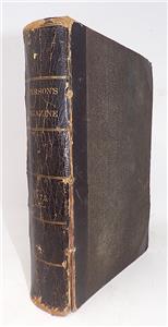 A bound volume of Peterson's Magazine for 1872. It was published by Charles J. Peterson, Philadelphia, and is inclusive of all the issues of volumes 61 and 62. Its a first edition, 8vo, bound in 1/2 leather, with pebbled, cloth-covered boards, and leather corners and spine. The volume is full of numerous illustrations, including hand-colored, fold out fashion plates, instructional illustrations in color and black & white, and numerous engravings of the sort of sentimental artwork familiar to perusers of ladies magazines of the Victorian era.