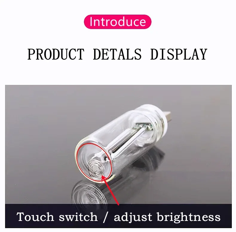 Discription: 【Shell material】:glass 【Power】: 0.3W 【Size】: 64*22mm 【Color】: Warm / Cold White /Pink / Red / Green / Blue / Purple -1-.Infinite dimming, brightness can be adjusted with just a touch of your finger, taking care of your eyes. -2-.Cylindrical shape, simple and fashionable : The compact cylindrical design easily integrates into various home styles. -3-.USB power supply, convenient and worry free: plug and play, environmentally friendly and economical. -4-.Soft light protection for eyes, peaceful sleep : Low blue light design, caring for your and your family's eyes. This touch dimming night light is an ideal choice for your bedroom, living room, and car interior, lighting up every warm night for you! Attention: Do not use fast charging plugs, otherwise it may burn the product!!!