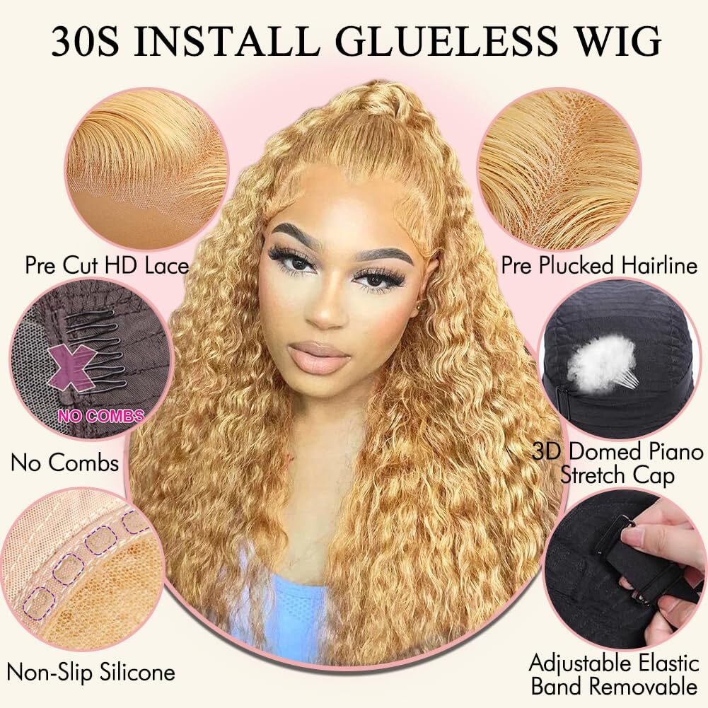 Product: Wear And Go Glueless Wigs Honey Blonde Curly 13×4 Lace Front Wig Human Hair