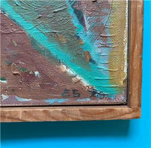 Oil on canvas, signed “E.S.” lower right and dated ’70. On the reverse, inscribed “Elsebet Schütze 1970 – Haverum” (Danish for “Garden Space”).