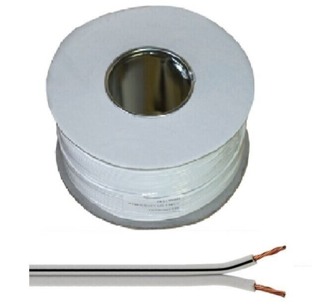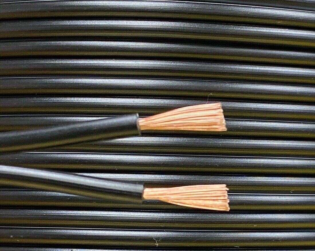 Flexible, heavy duty speaker cable with a mix of pure copper and CCA stranded conductors and a polarity line indicator.