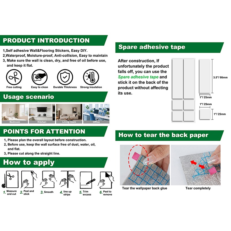 💡 Pro Tips: • Surface Prep: Clean walls with rubbing alcohol first • Smoothing Tool: Use a plastic card to prevent bubbles • Pattern Matching: Cut strips with 10cm overlap