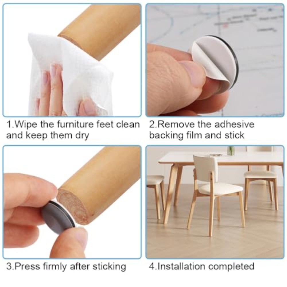 *Self-Adhesive Convenience: These furniture glide pads come with a self-adhesive backing, allowing for easy installation on chair and table legs without the need for additional tools or adhesives.