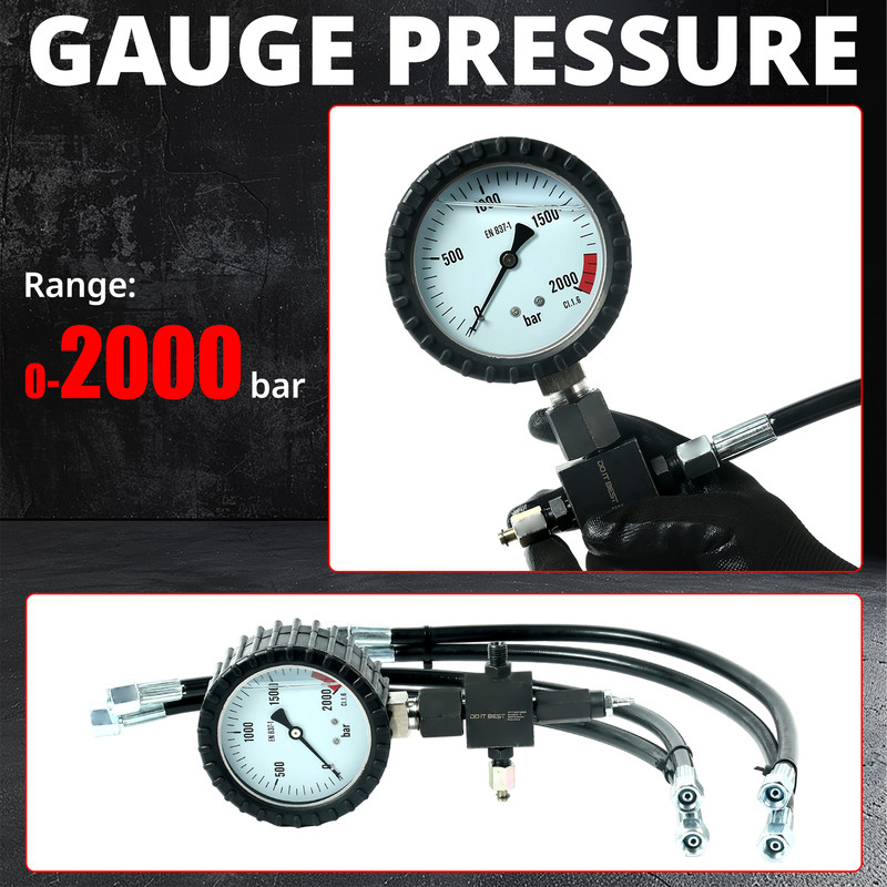 Mit einem Messbereich von 0–2000 bar misst dieses Kompressionsmessgerät den tatsächlichen Kraftstoffdruck und hilft, Fehlerquellen wie defekte Injektoren, Pumpendruckregler oder Kraftstoffleckagen schnell zu identifizieren. Es kann als Injektor Tester Diesel und Kompressionstester verwendet werden, um Startprobleme, ungleichmäßigen Motorlauf oder Leistungsverlust zuverlässig zu diagnostizieren.