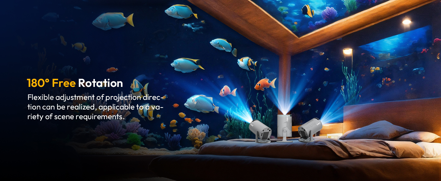 【180°Free Rotation】Flexible adjustment of projection direction can be realized, applicable to a variety of scene requirements. |