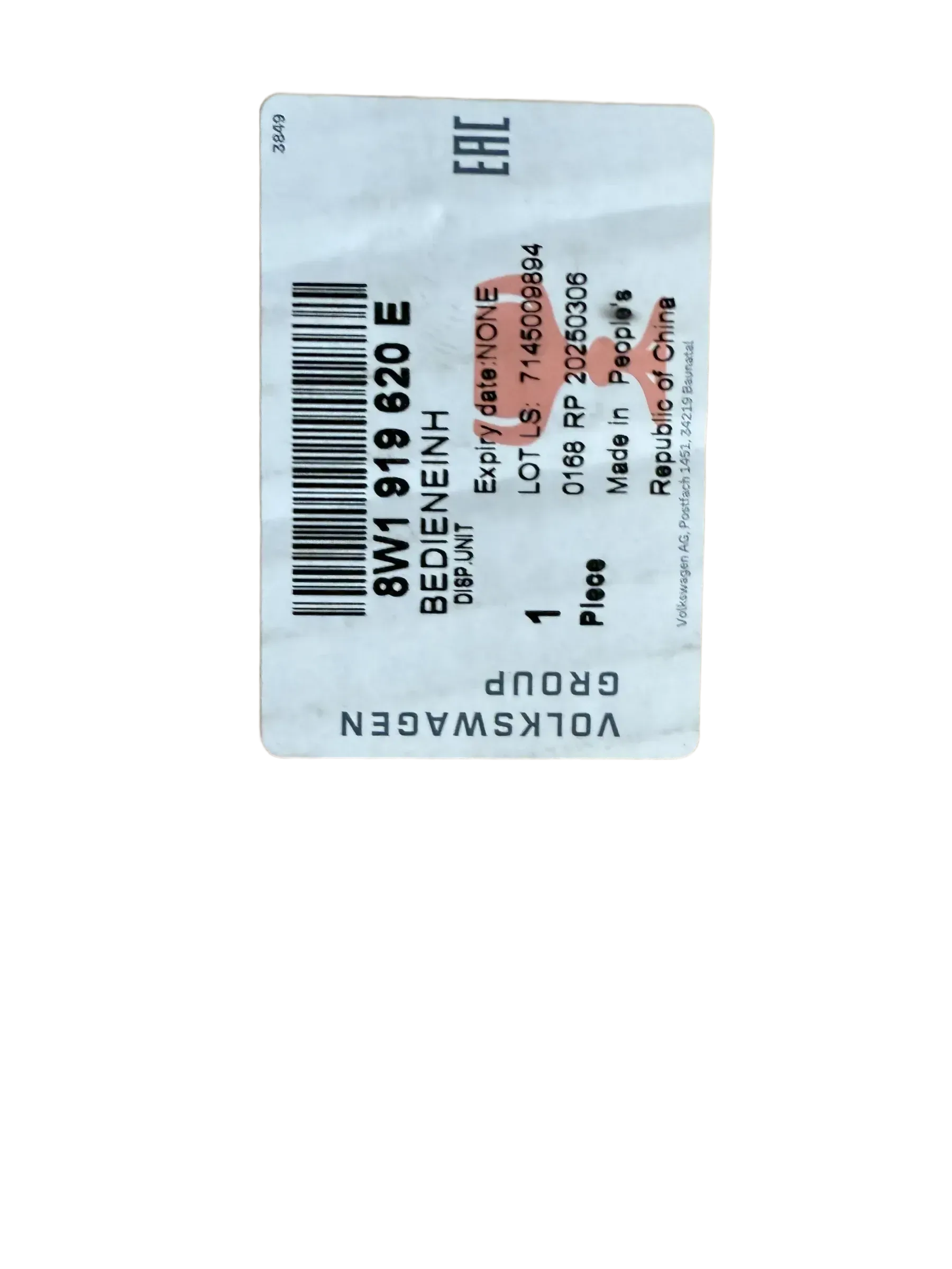 | Herstellernummer | 8W1919620E |