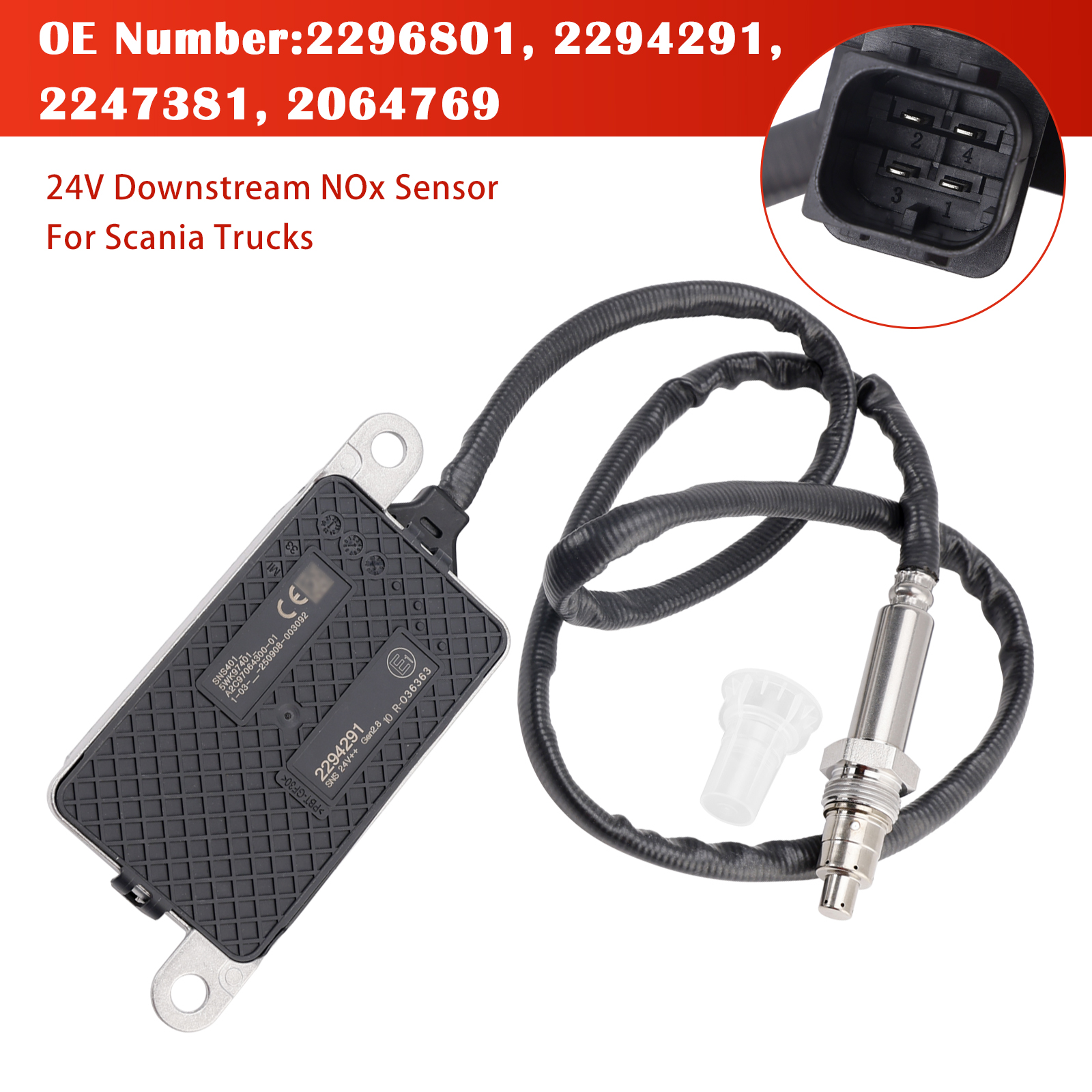 24V Downstream Nitrogen Oxygen NOx Sensor 2294291 For Scania Trucks