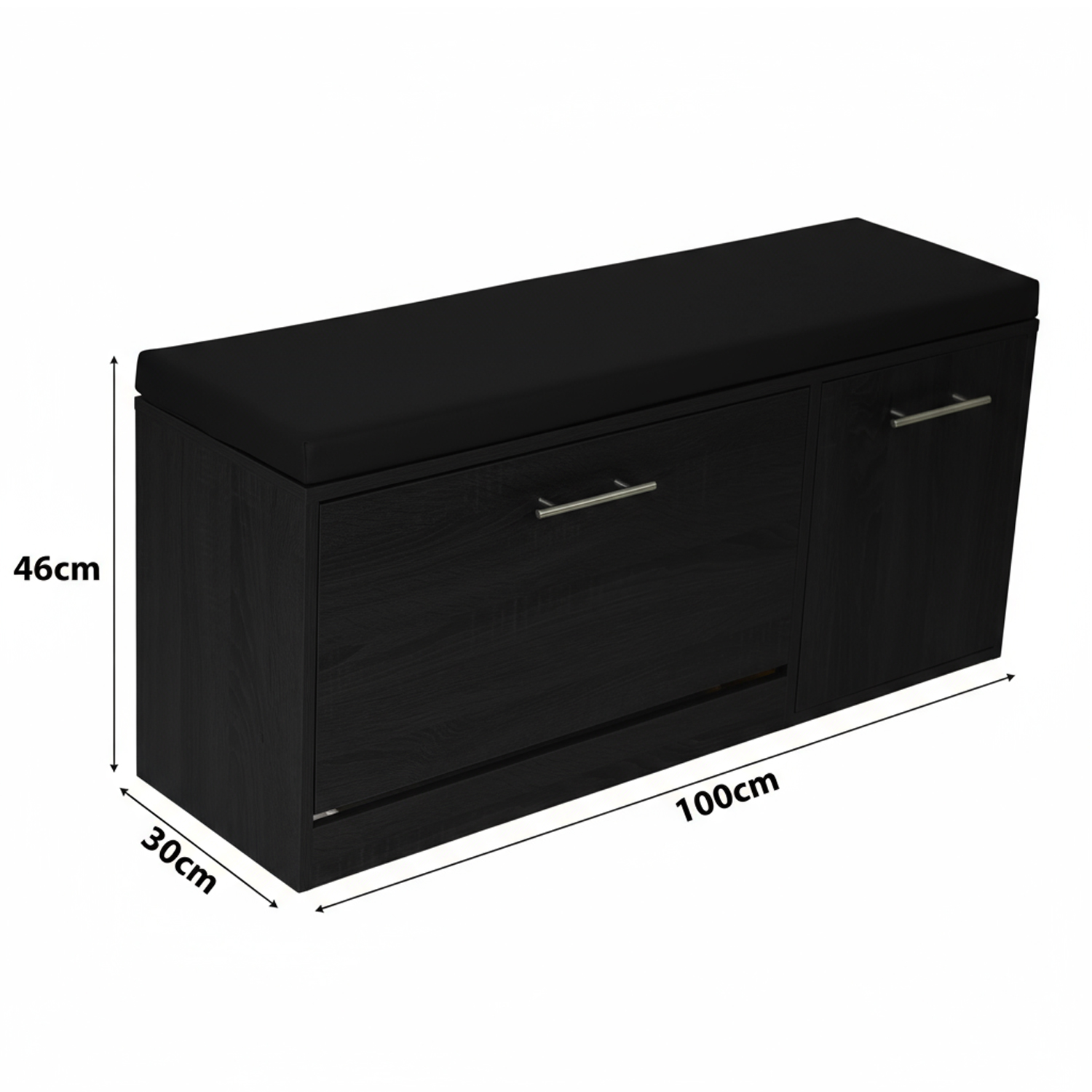 Dotata di cuscino imbottito in similpelle per una seduta comoda e facile da pulire, questa panca nasconde uno spazio sorprendente: un’anta a ribalta con tripla profondità per le scarpe più usate, un vano laterale perfetto per stivaletti o scarpe alte, e una mensolina per oggetti piccoli come lucidi, spazzole o chiavi.