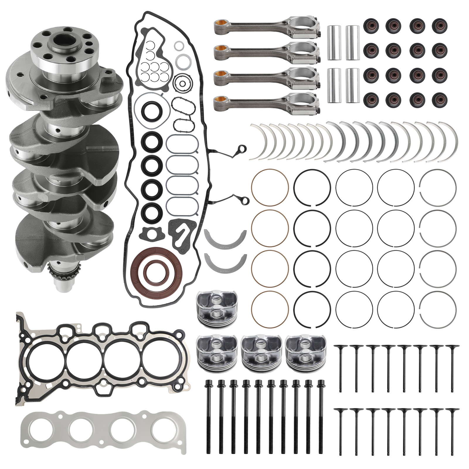 | Package Includes | 1x Crankshaft, 4x Connecting Rods, 1 Set Gasket Seals Kit, 1 Set Pistons & Rings, 1 Set Timing Chain Kits, 1 Set Main & Rod Bearing (with Thrust Washer), 1 Set Head Bolts, 8x Intake Valve, 8x Exhaust Valve |