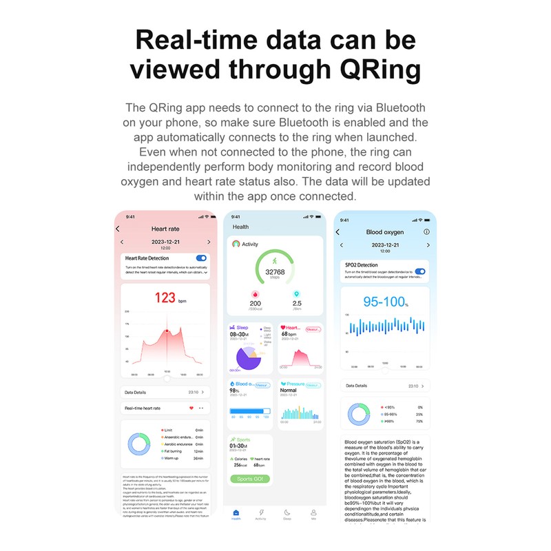 Präzise Herzfrequenzüberwachung: Mit dem hochpräzisen und leistungsstarken Herzfrequenzsensor unseres Fitness-Tracker-Rings können Sie Ihre Herzaktivität mühelos in Echtzeit überwachen. Erhalten Sie intelligente Gesundheitseinblicke und behalten Sie den Überblick über Ihre Fitness.