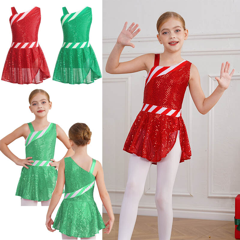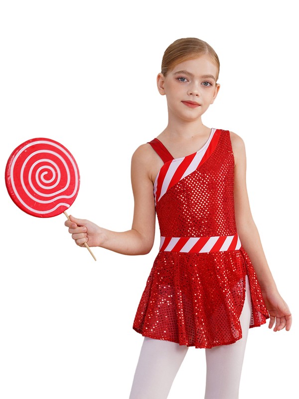 A Christmas costume for girls, classic stripes pattern and shiny sequins make girls eye-catching on the stage.