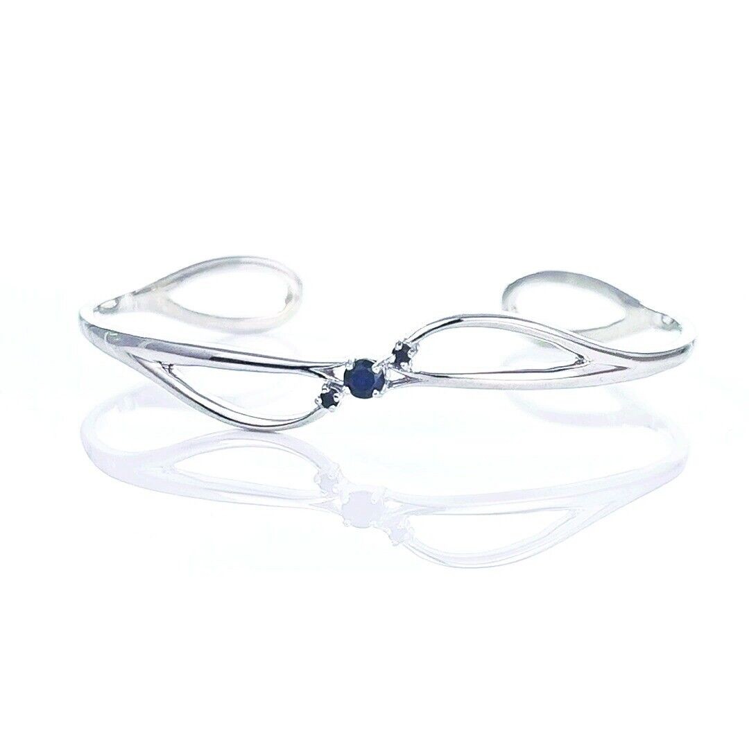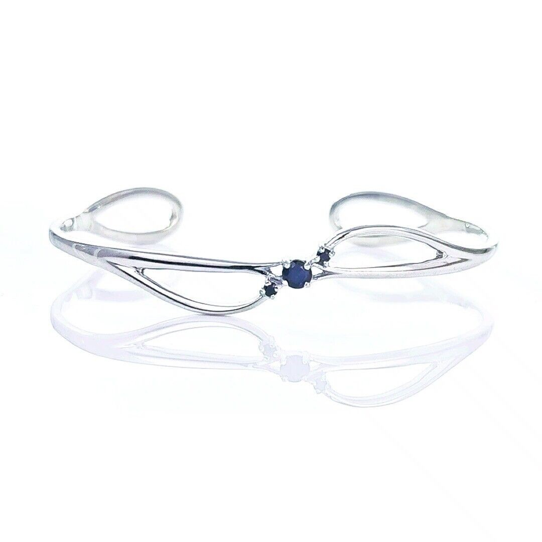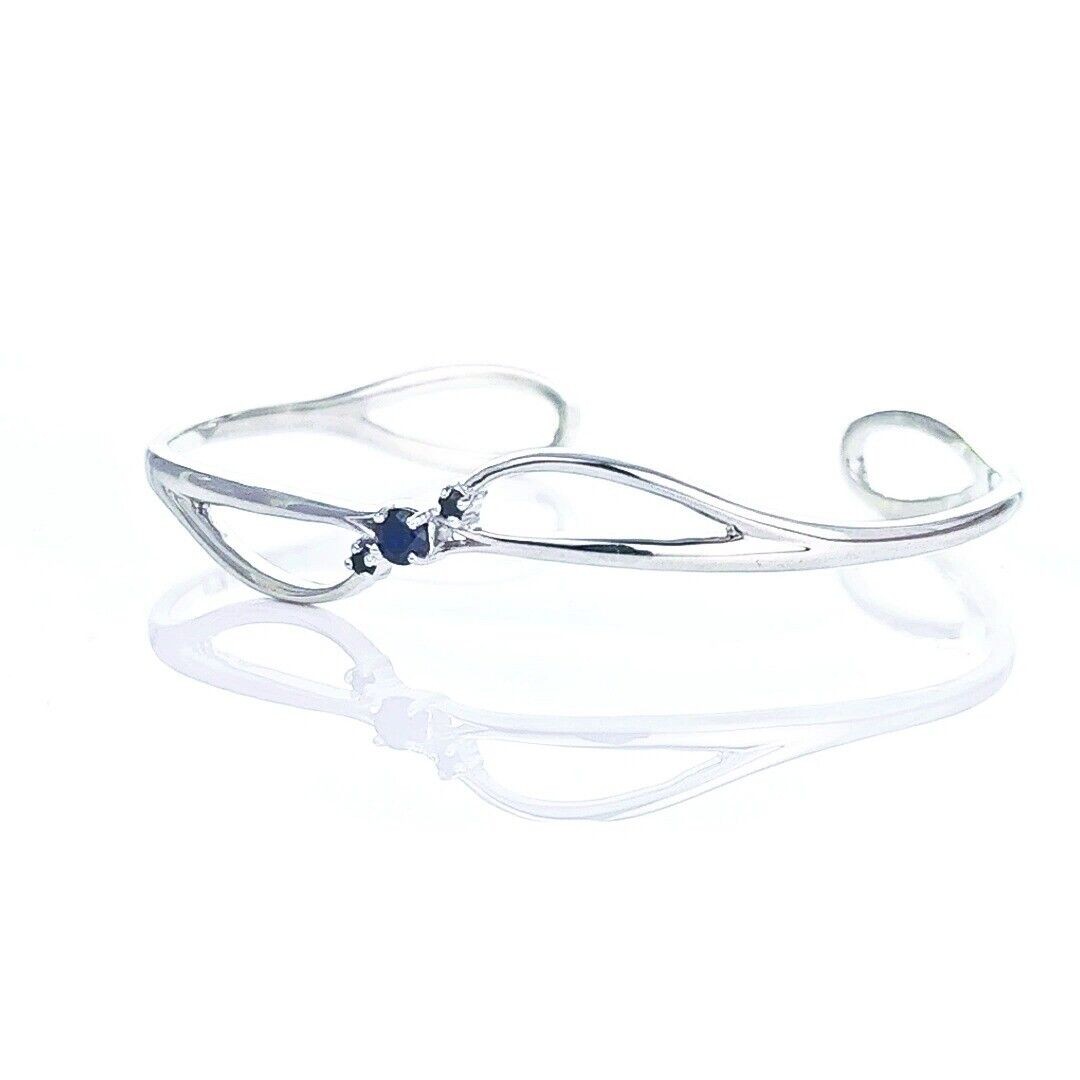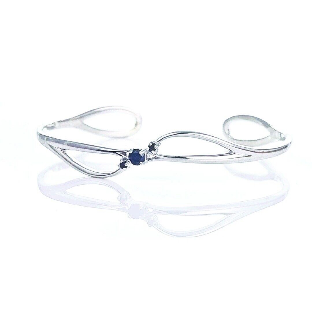 Sapphire Bangle Sterling Silver Inky Blue Natural Gemstone Trilogy Hallmarked