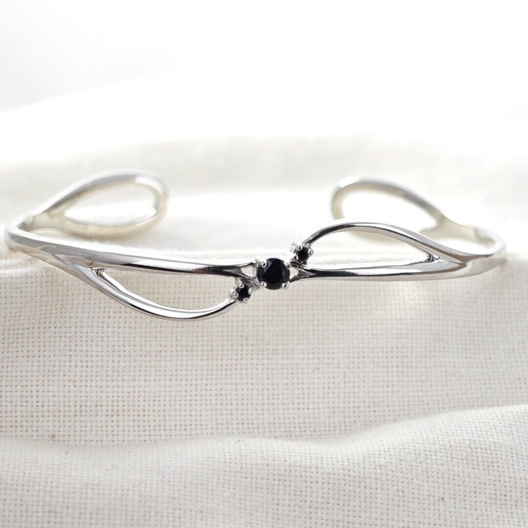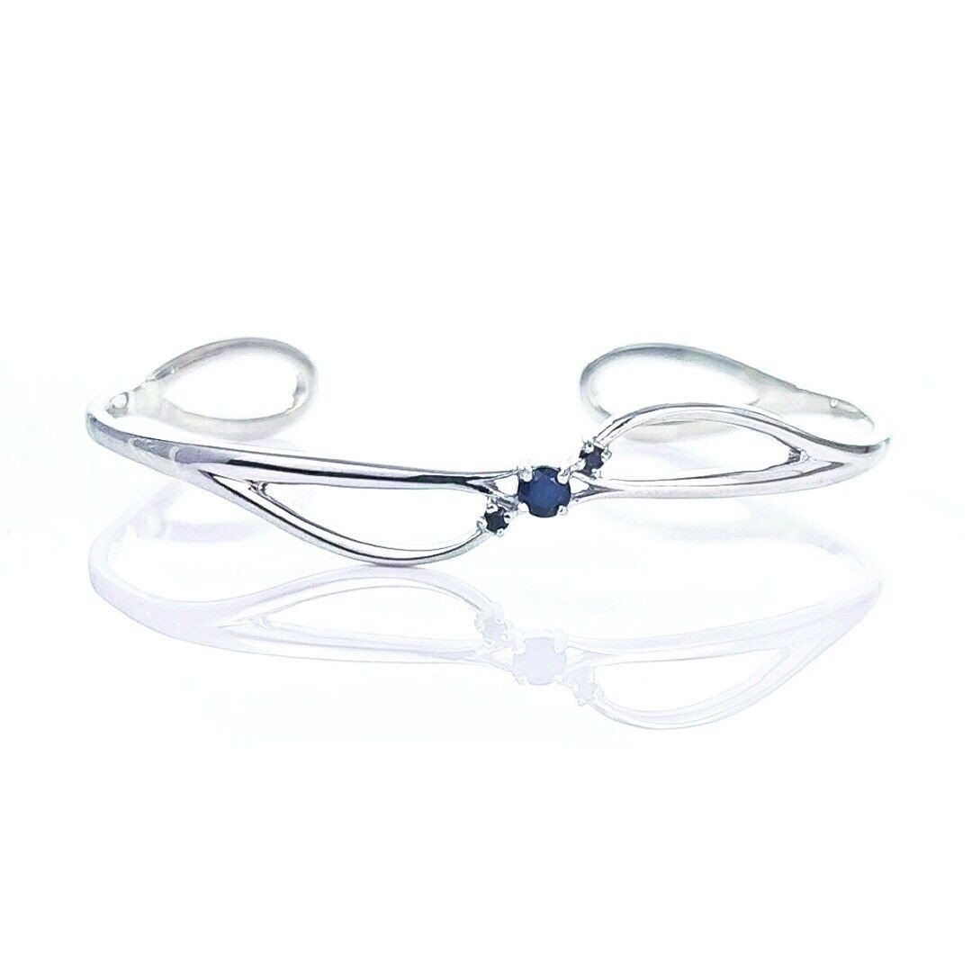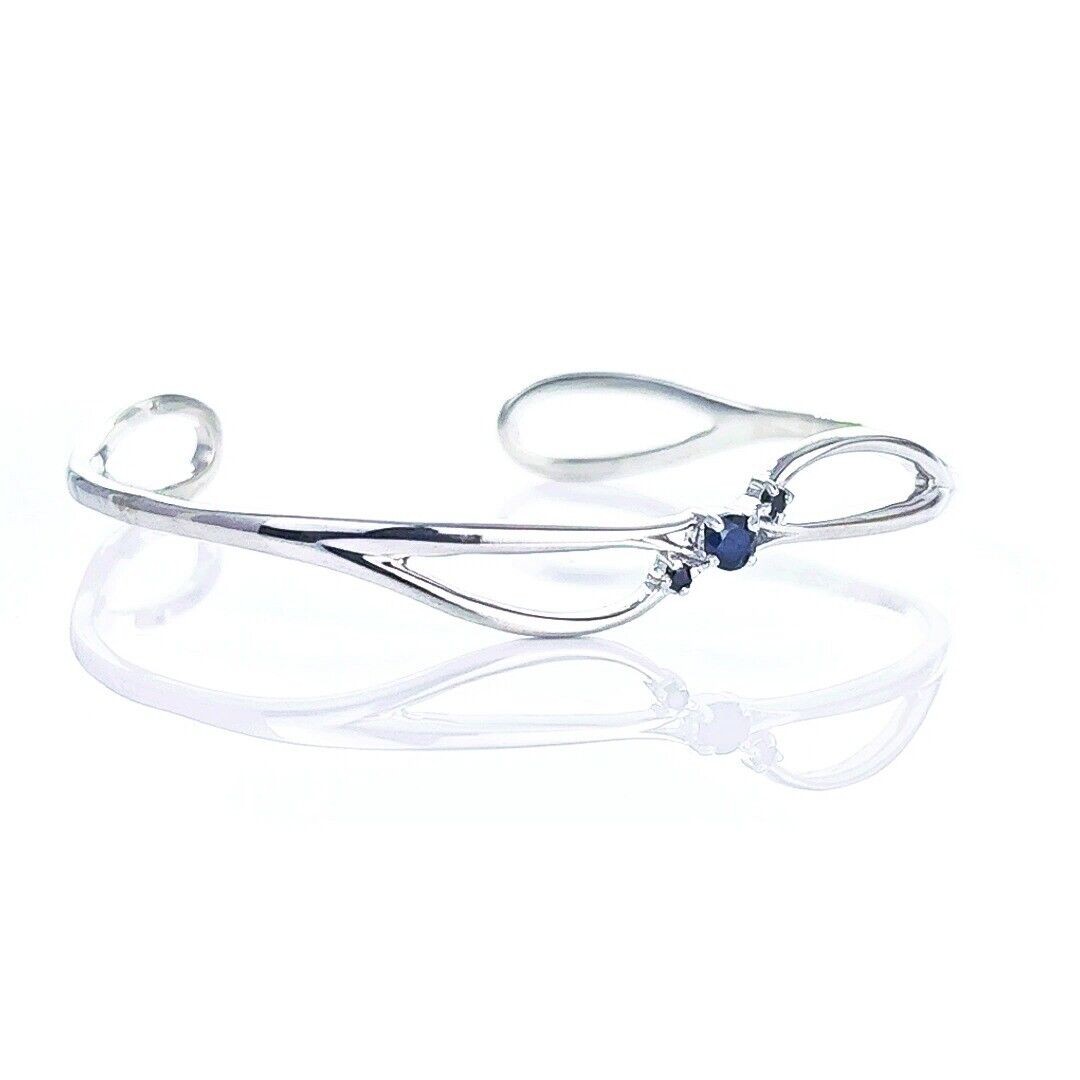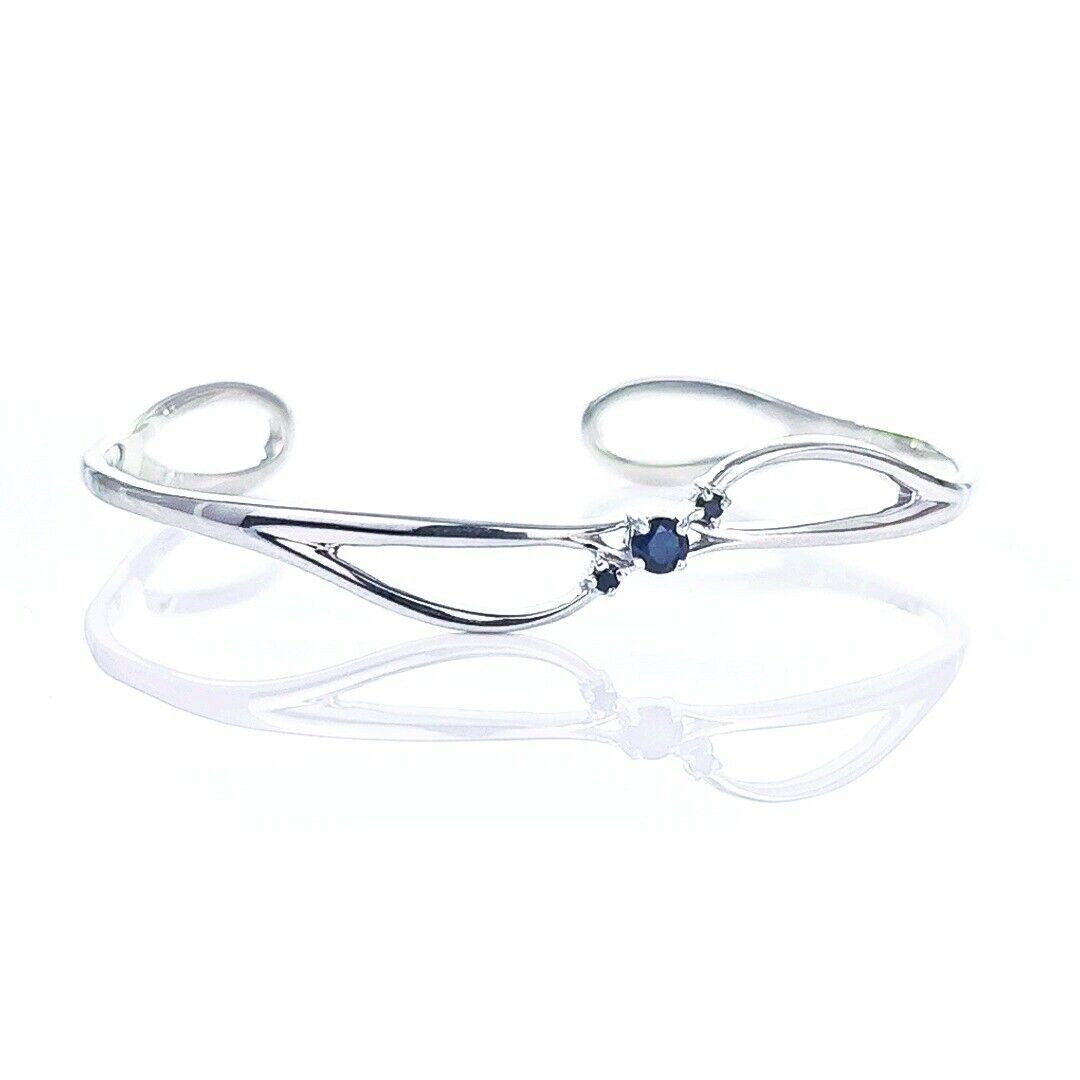 Sapphire Bangle Sterling Silver Inky Blue Natural Gemstone Trilogy Hallmarked