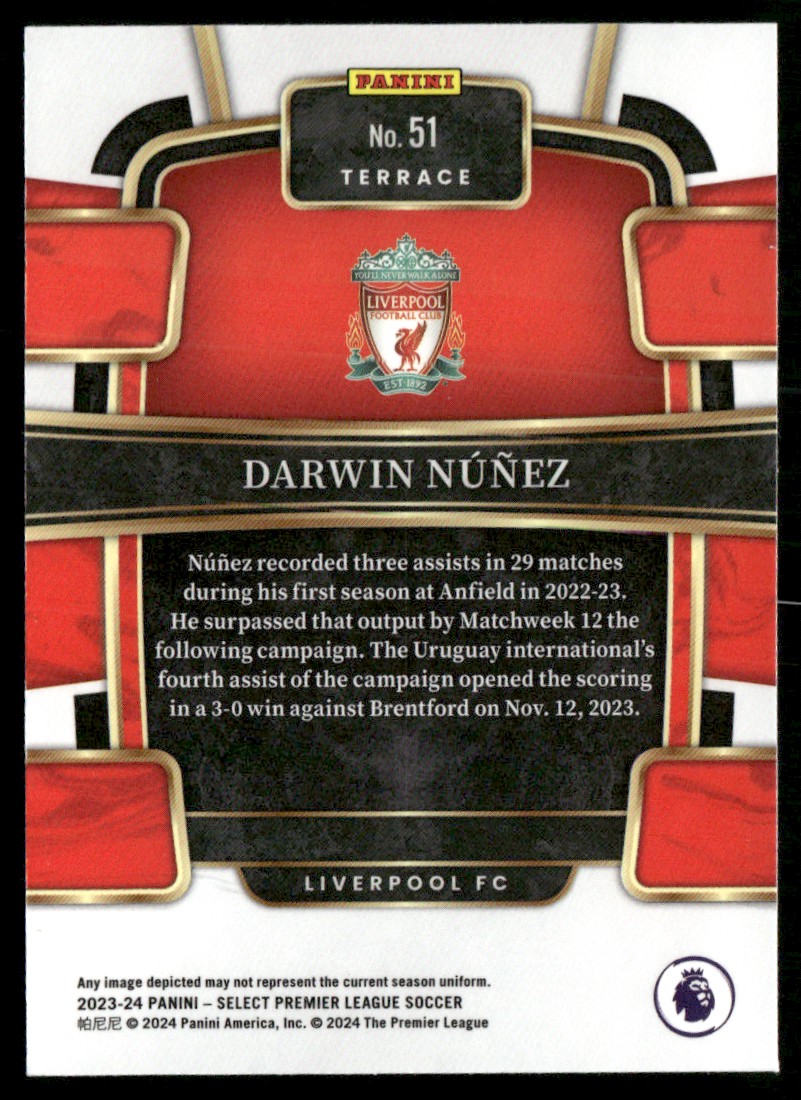 | 2023 PANINI SELECT PREMIER LEAGUE DARWIN NUNEZ LIVERPOOL #51 |