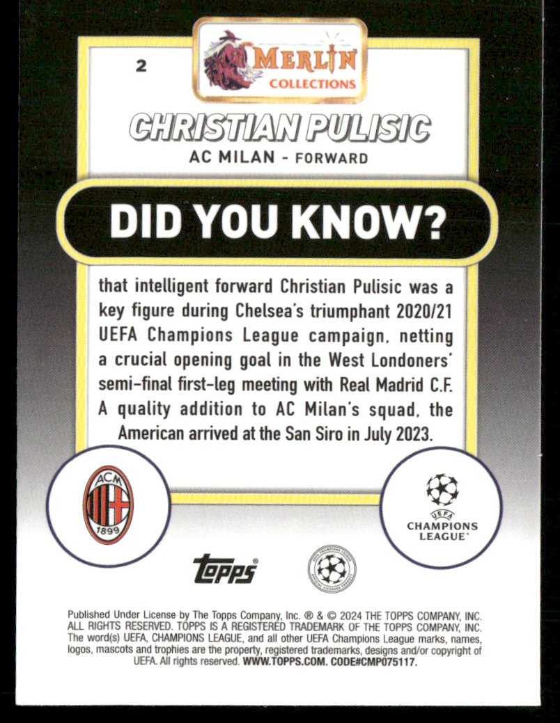 | 2024 MERLIN UEFA CHAMPIONS LEAGUE CHRISTIAN PULISIC A.C. MILAN #2 |