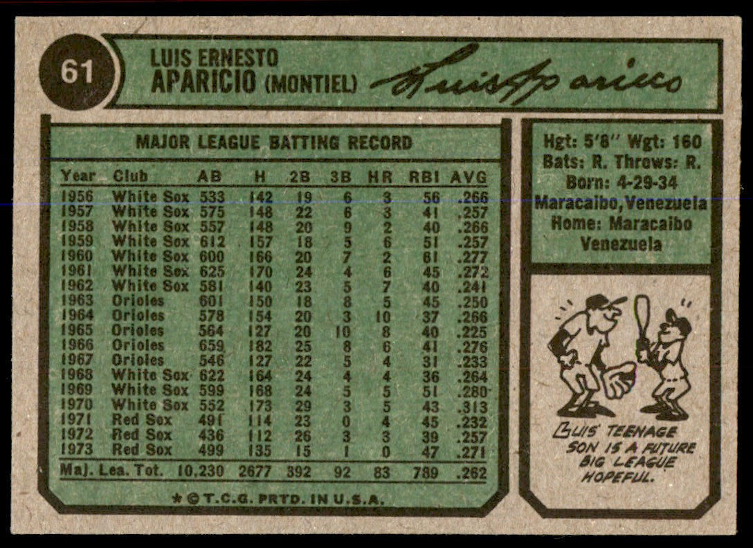 1974 Topps #61 Luis Aparicio Boston Red Sox EX-MINT RC538