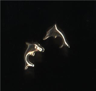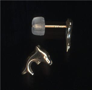 New 14K (8mm long) Solid Yellow Gold Dolphin Fish Stud Earrings With Transparent Rubberized Easy Secure Push Backs. Hallmarked "14K" and acid tested gold (NOT gold plated or gold filled). Shipping with tracking # and insurance will also be included at no additional charge.