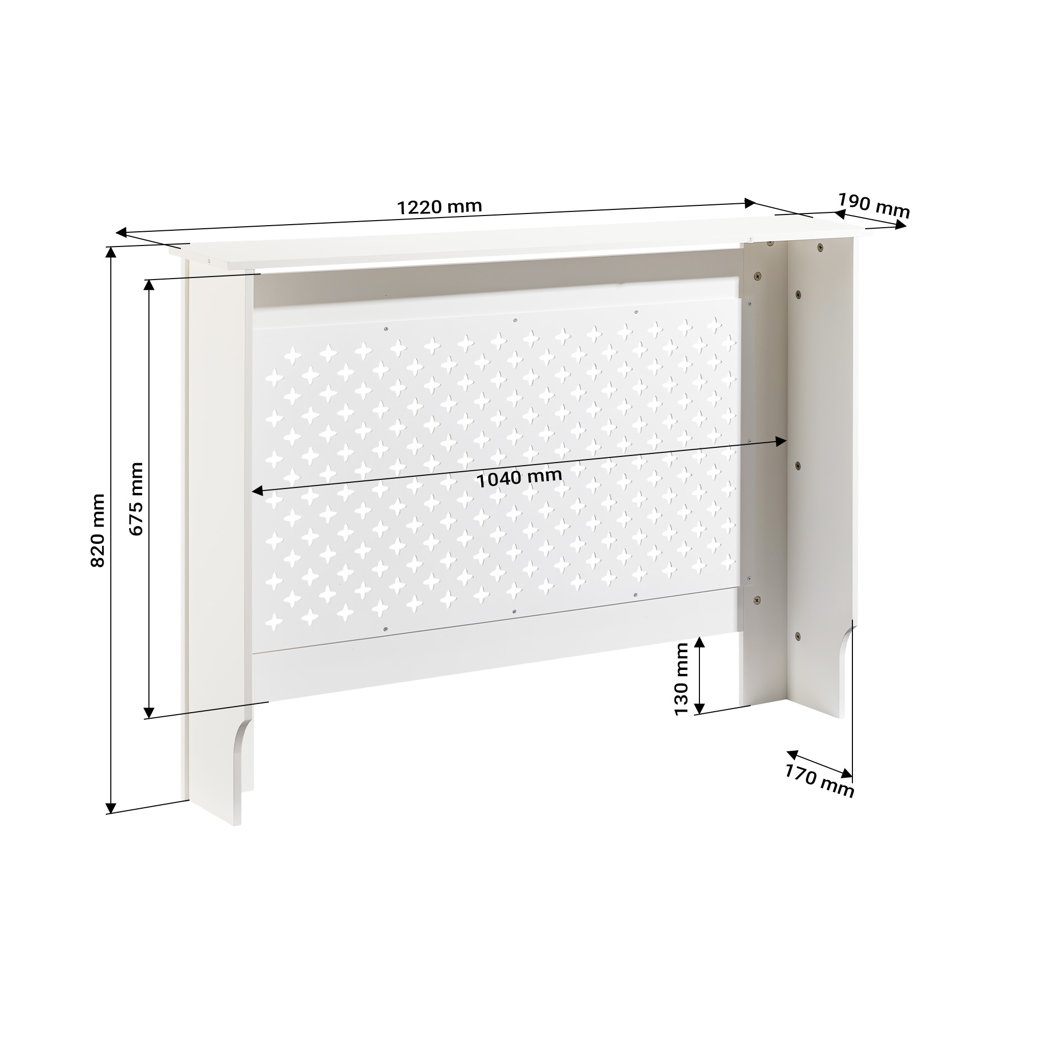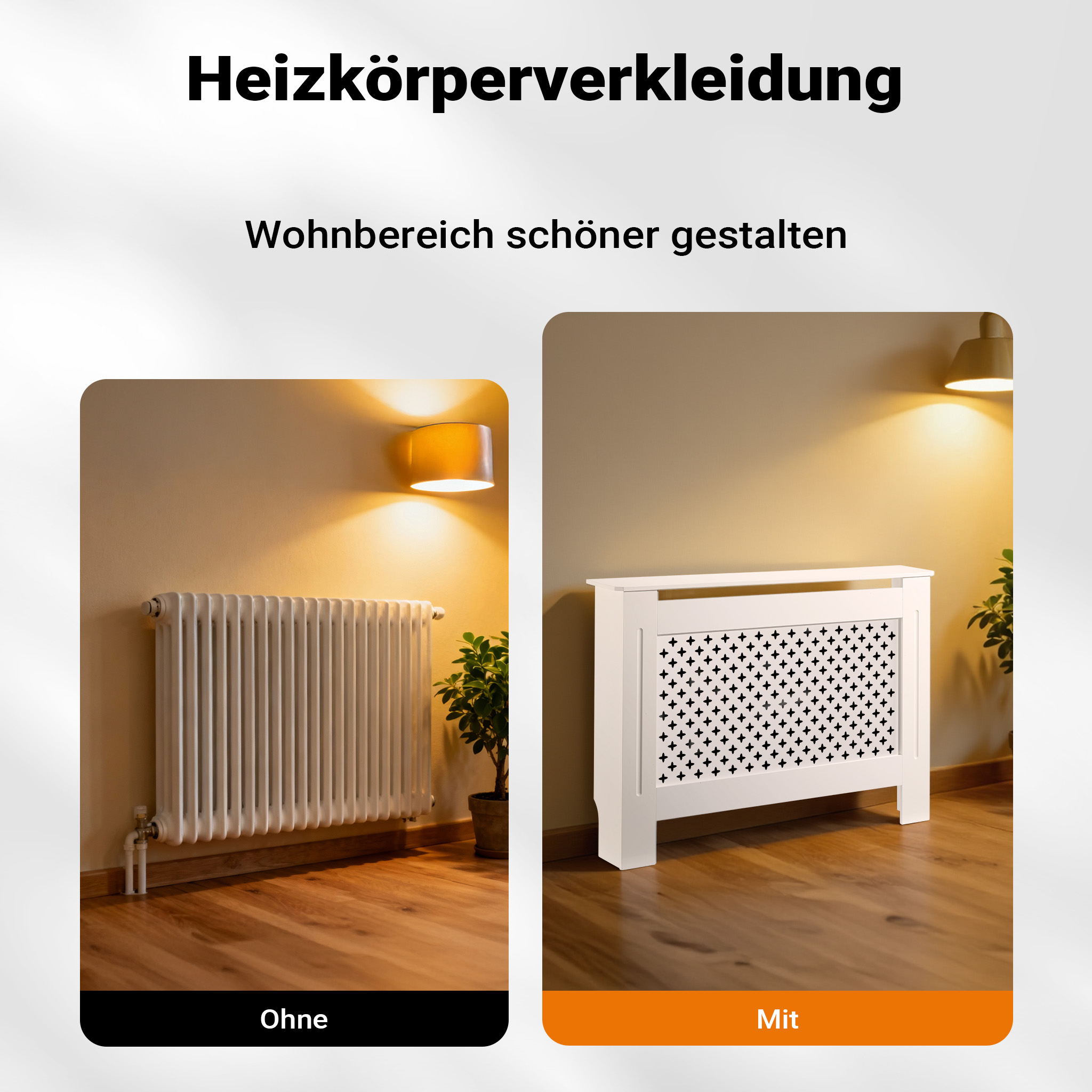La linea pulita e il disegno frontale sono pensati per offrire un copritermosifoni in legno che coniughi eleganza e praticità. Il design permette al calore di fuoriuscire senza ostacoli, garantendo un comfort ottimale. Allo stesso tempo, il copritermosifone moderno nasconde perfettamente il radiatore, contribuendo a un aspetto ordinato e coerente della stanza.
