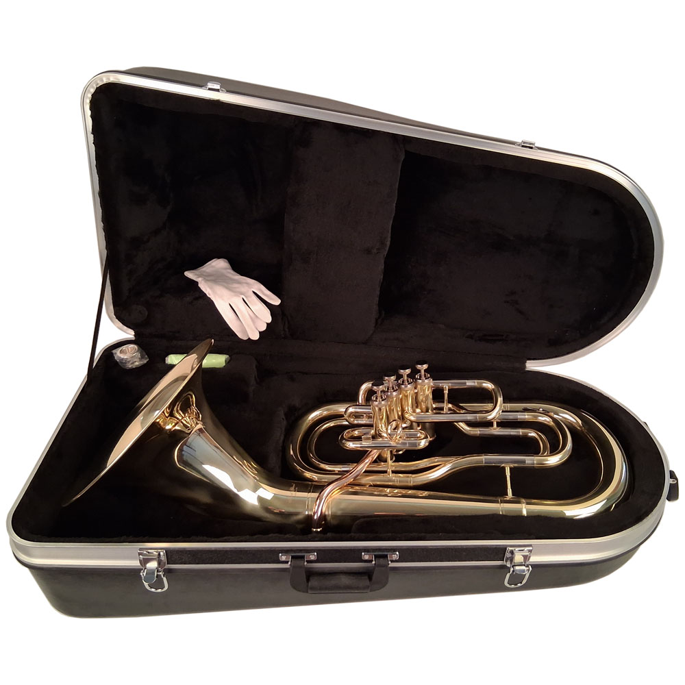 Messing lackiert. Gute Verarbeitung, Hundertfach bewährtes Konzert Bariton. Neue verbesserte Ausführung mit goldmessing Mundrohr und Monel-Ventilen.