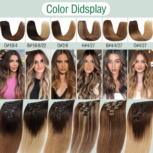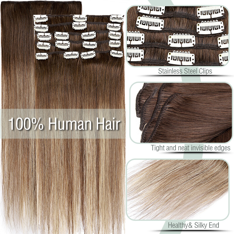 Invisible 8PCS Clip In Human Hair Extensions 100% Real Remy Hair Full Head Ombre