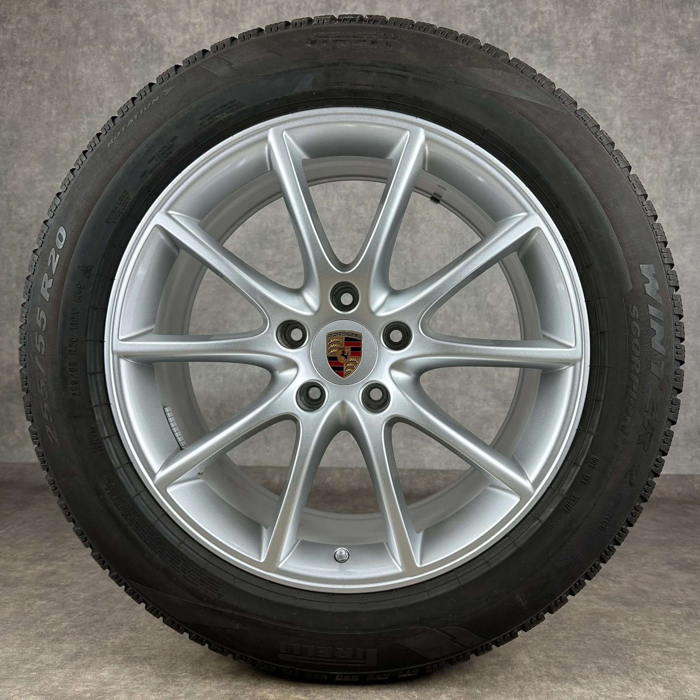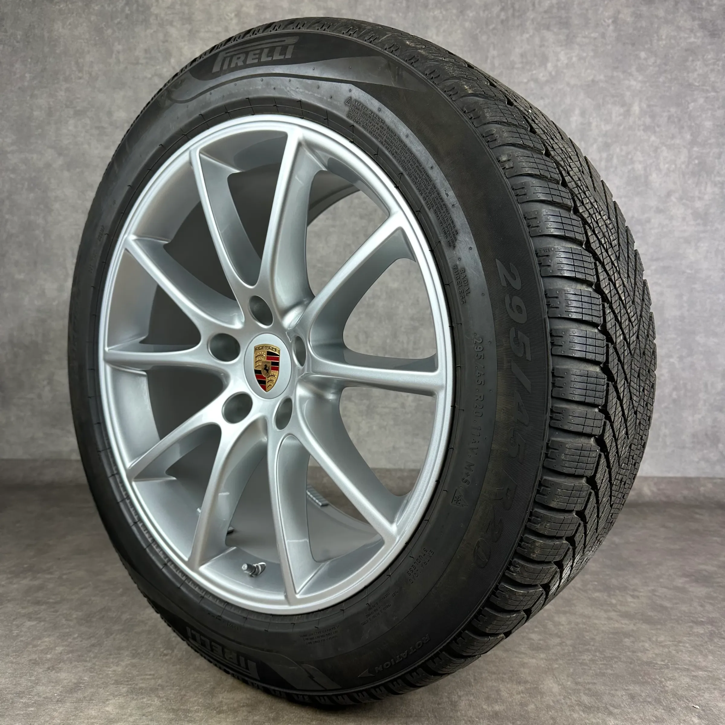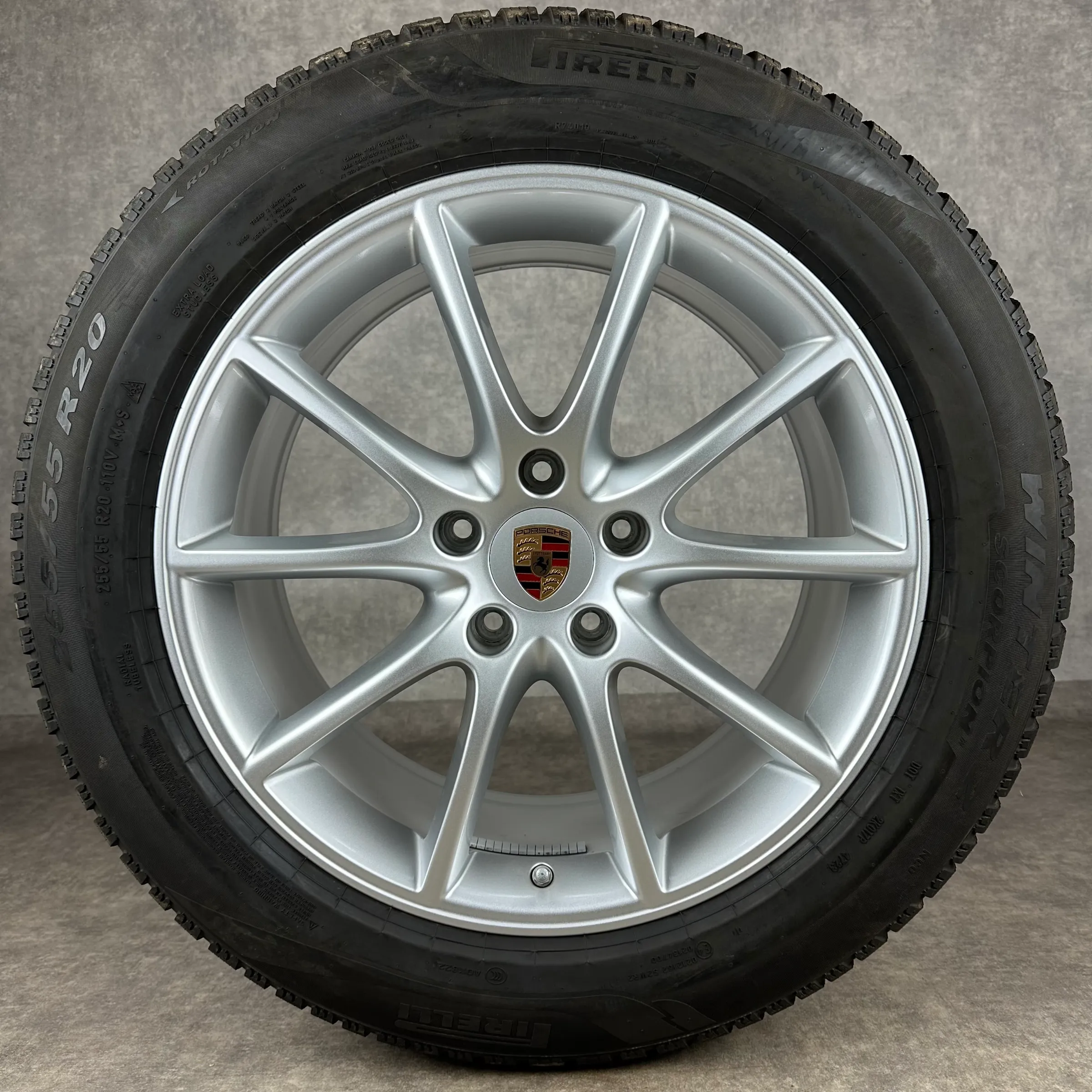 Angeboten werden 4x Original PORSCHE Cayenne Coupé (E3 II) Cayenne Design Winter-Kompletträder in silber.