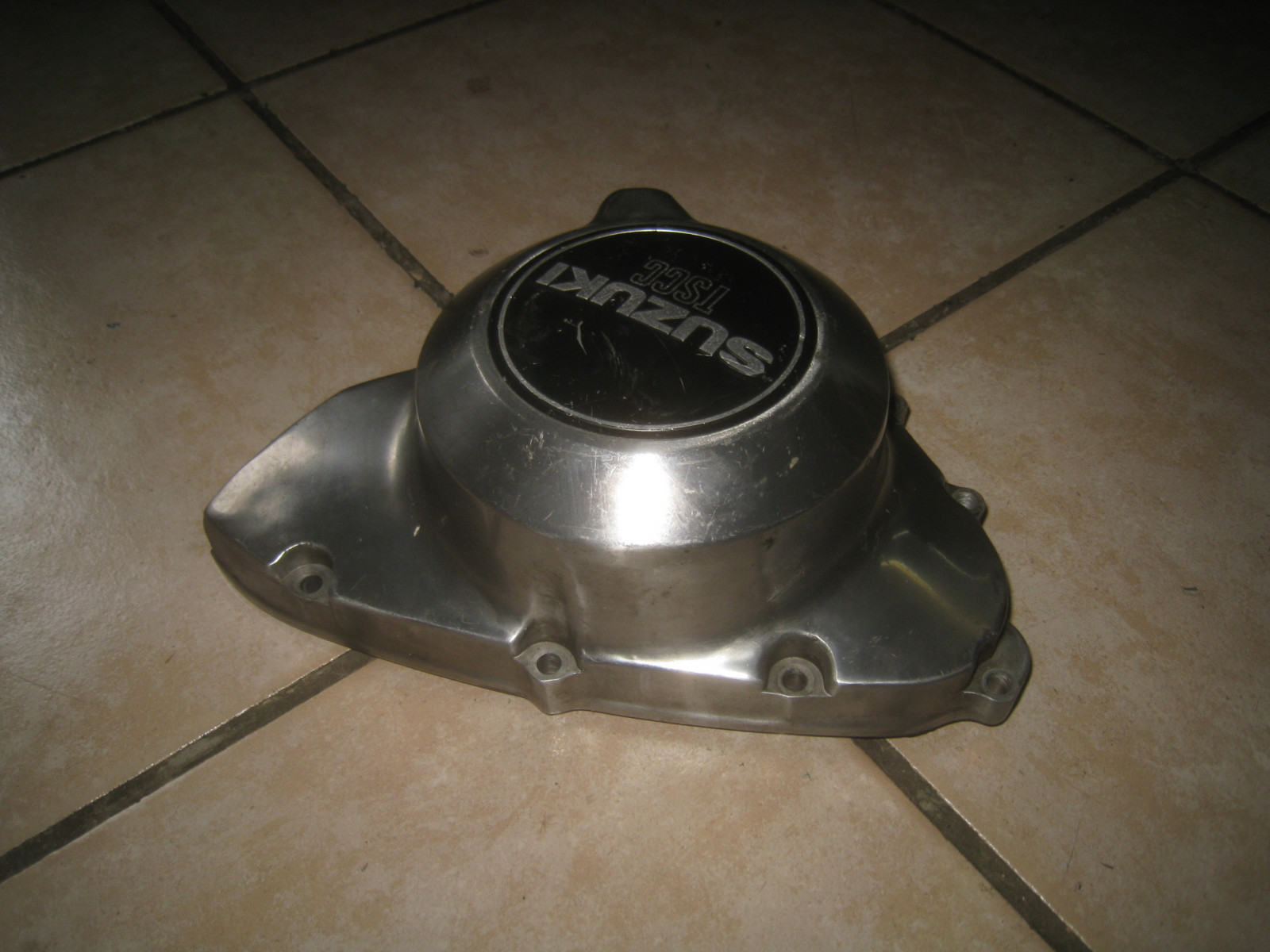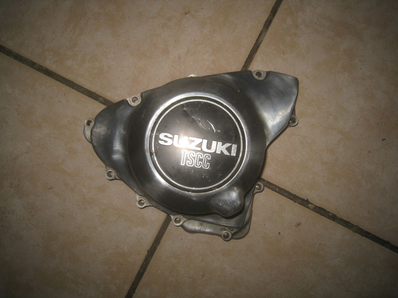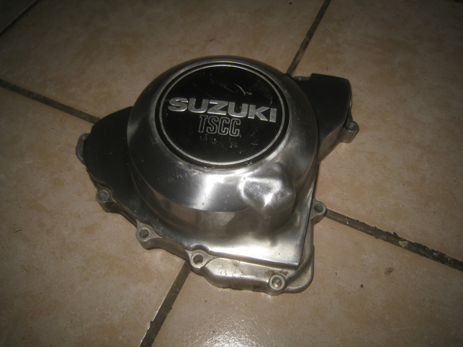 Couvercle d'alternateur d'occasion avec emblème. Retiré d'une année modèle GSX 250 (GS25X). 81-82 avec moteur argenté. Quelques rayures présentes. Techniquement parfait.