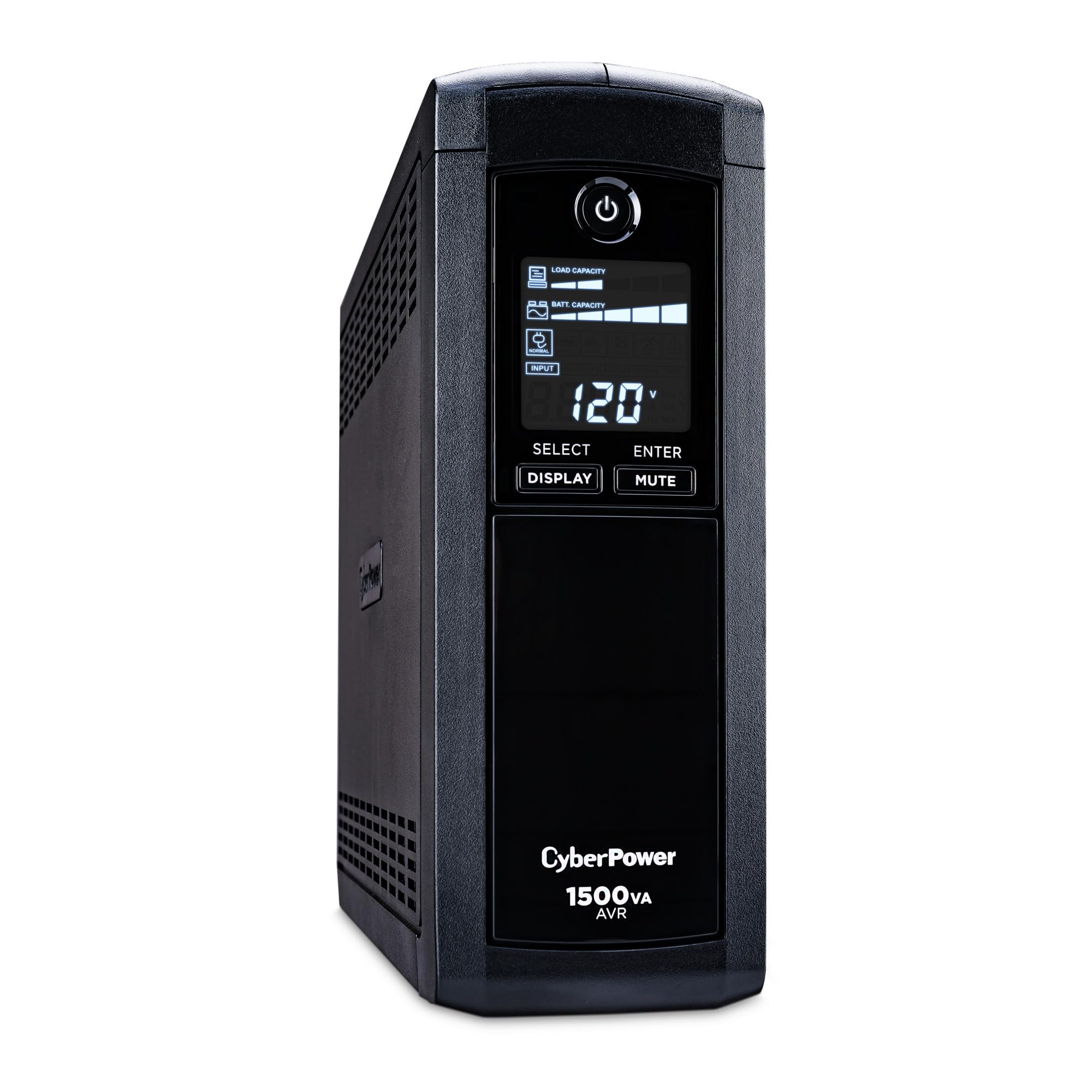 1500VA/900W Intelligent LCD Battery Backup Uninterruptible Power Supply (UPS) System uses simulated sine wave output to safeguard workstations, networking devices, and home entertainment equipment