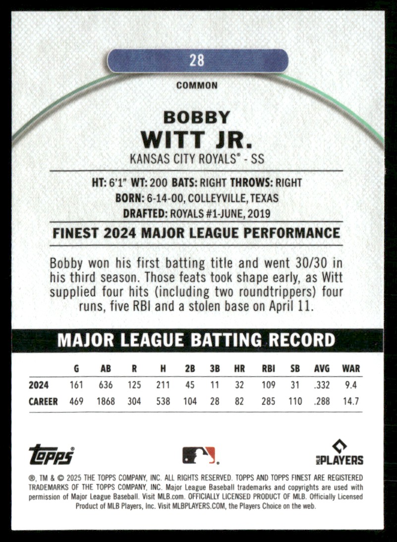 | 2025 FINEST BOBBY WITT JR. KANSAS CITY ROYALS #28 |