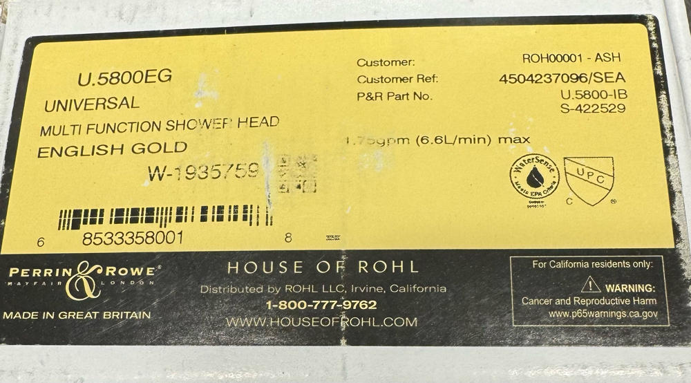 Perrin & Rowe U.5800EG 1.75 GPM Multi Function Shower Head, English Gold*READ*