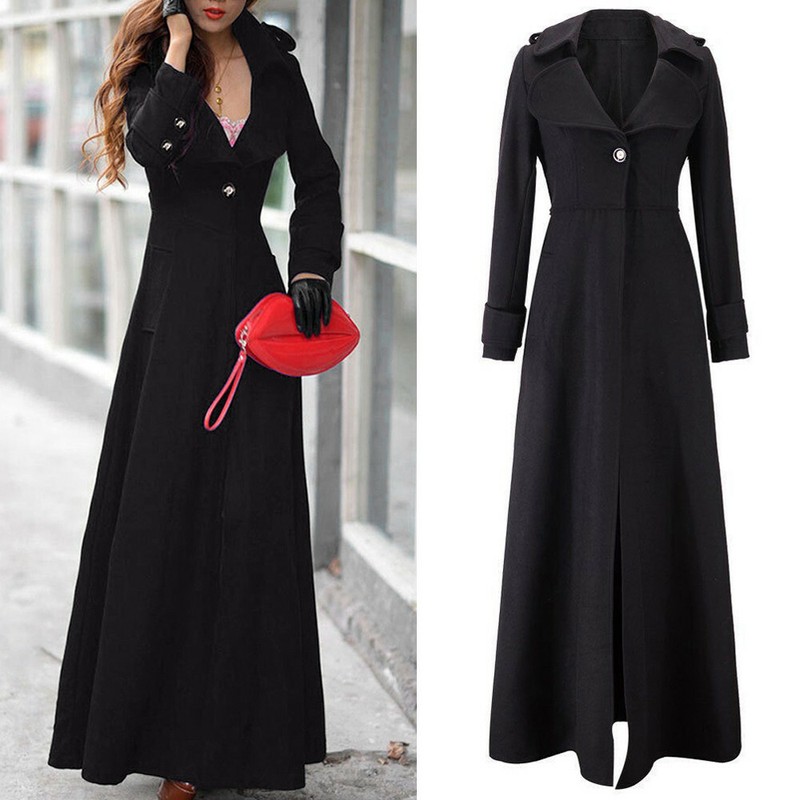 Womens Fashion Lapel Long Jacket Winter Warm Slim Fit Maxi Trench Coats Outwear