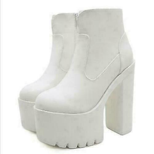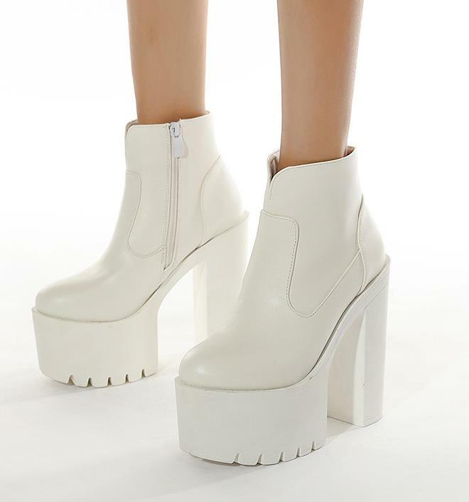 Women Ankle Boots High Block Heels Platform Round Toe Gothic Side Zip Punk Shoes