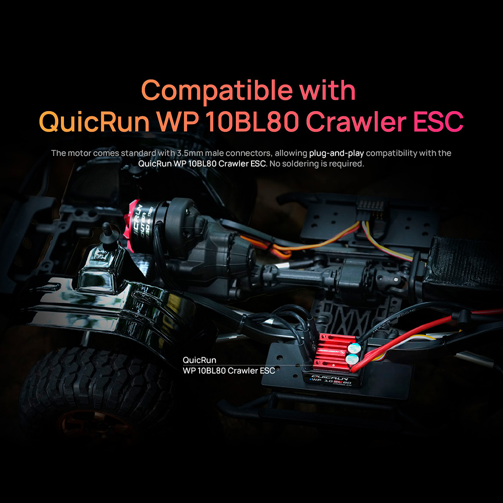 The motor features a modular, removable construction,Makes routine cleaning and maintenance easy. allowing plug-and-play compatibility with the QuicRun WP 10BL80 crawler ESC.suitable For 1/10 1/12 crawlers car