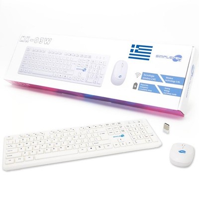 Wireless Keyboard and mouse kit with Greek QWERTY layout, numerical keypad, dwarf USB receiver and 2.4GHz stable connection.