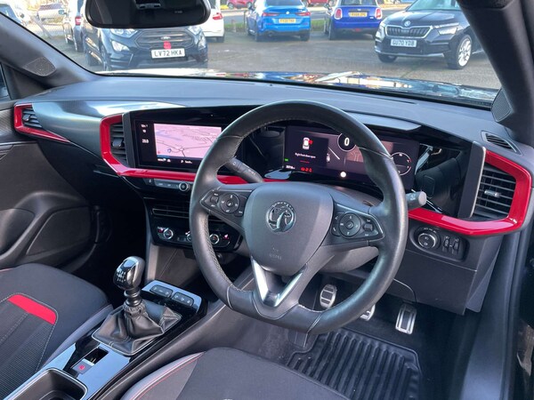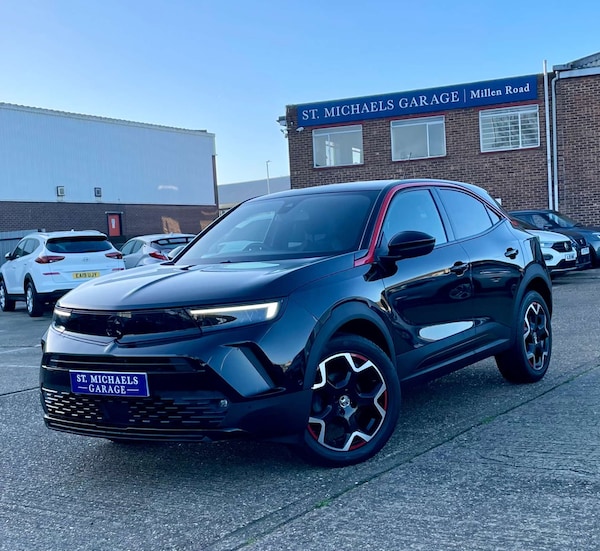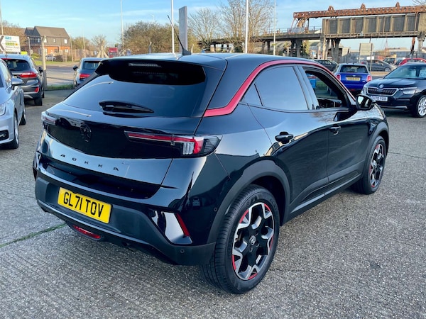 Used 2022 Vauxhall Mokka SRI NAV PREMIUM for sale in Sittingbourne, Kent, includes 18-inch bi-colour alloy wheels with red accents, 12-inch drivers digital instrument cluster, 10 inch touch sensitive LCD central multi-function display screen, 6 speed gear box, ABS with EBD and Brake Assist function and more. Year: 2022 (71), Mileage: 20,700 miles, Transmission: Manual, Fuel Type: Petrol, Insurance Group: 14E, Colour: Diamond Black with Red Details, Doors: 5, Engine Size: 1.2L. Price £14,995.