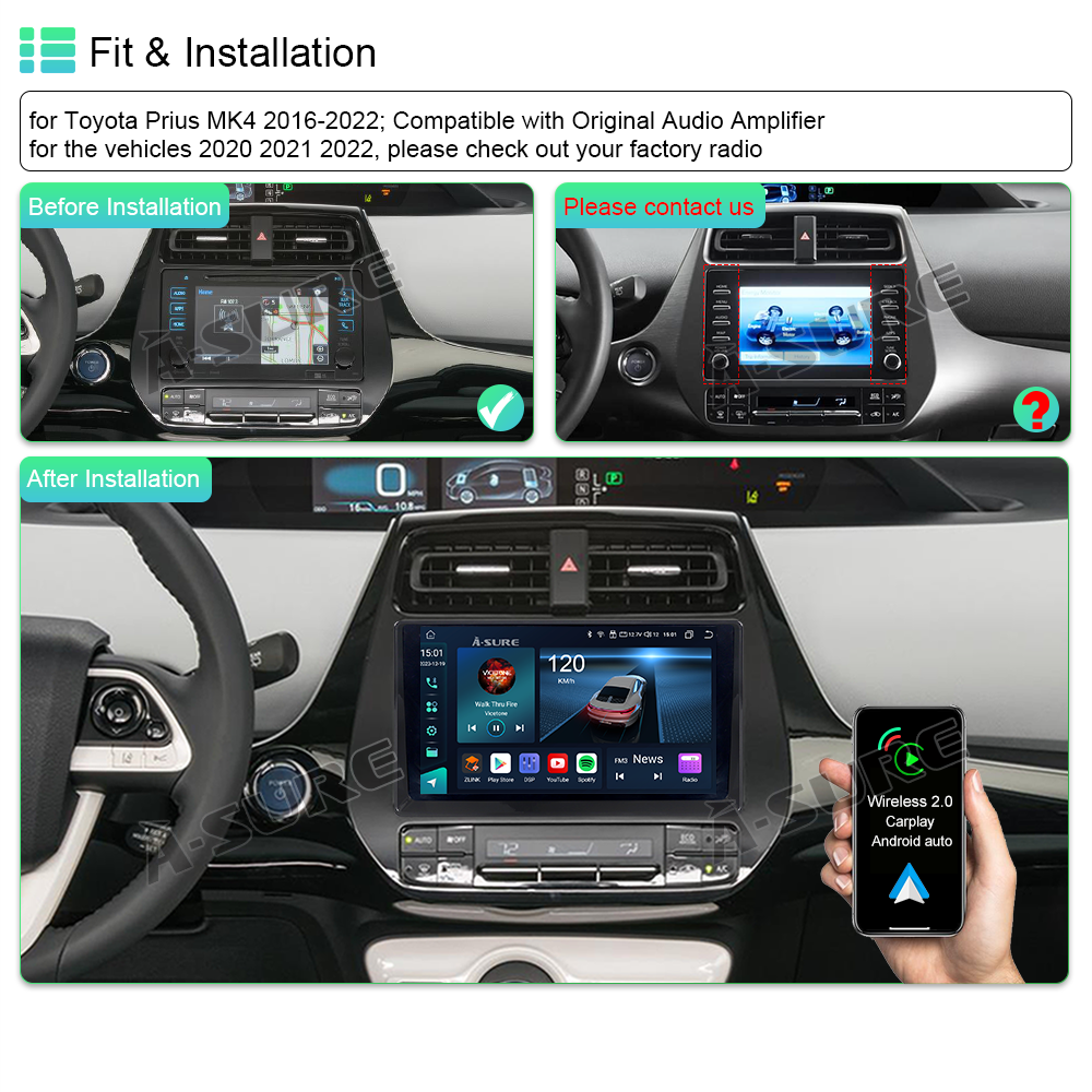 8 Core 6+128GB Android 15 Car Stereo Radio For Toyota Prius 2016-2022 Apple CarPlay GPS Navigation Screen Head Unit WIFI
