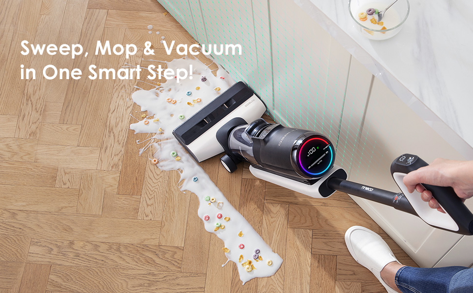 SMART VACUUM & MOP TWO-IN-ONE – Clean wet or dry messes and tackle tough and sticky messes on hard floors with ease. Featuring Tineco’s proprietary iLoop Smart Sensor Technology, it automatically adjusts suction, water flow, and brush roller speed to clean any and all messes.
