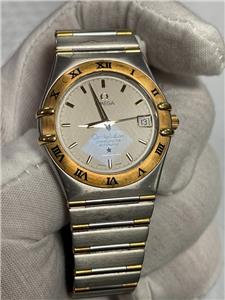 OMEGA 368.1201 CONSTELLATION TWO-TONE DATE WHITE DIAL 35mm AUTOMATIC WATCH. ITEM IS USED WITH COSMETIC WEAR BUT STILL WORKING GOOD AND HOLDING TIME, PLEASE SEE PHOTO'S. WATCH ONLY, BOX, PAPERS AND LINKS ARE NOT INCLUDED.