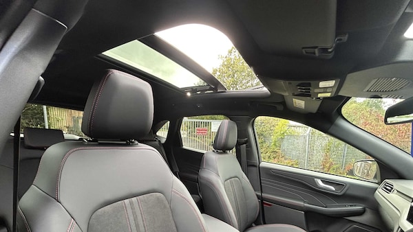 Frozen White, Winter Pack, Handsfree Power Tailgate, 12-Way Ergonomic Power Adjust Drivers Seat with Memory, 12-Way Ergonomic Power Adjust Passenger Seat, 2nd Row Sliding Seats, Digital Colour 12.3in Instrument Cluster, Electronic Air Temperature Control - EATC, 20in Alloy Wheels - Black Ford Performance, Black Roof Rails, Large Rear Spoiler, Power - Heated Folding Door Mirrors with Puddle Lights - Memory Function - Camera, Power Opening Panoramic Roof, Quickclear Heated Windscreen, Rear Privacy Glass, Red Brake Calipers, ST-Line Body Styling with Black Painted Bumper Details and Black Mirror Caps, Windows - Power Front and Rear with Global Closing, 360 degree Camera, Adaptive Cruise Control, Ford SYNC 4 Navigation, Front and Rear Parking Sensors, Full LED Headlamps and LED Daytime Running Lights, Rear Lights - LED, Single Phase Public Charge Cable, Suspension - Sports, Driver Assistance Pack, Keyless Entry and Ford Power Starter Button - Keyless Start, Lane Keeping Aid with Lane Departure Warning, Pre-Collision Assist with Autonomous Emergency Braking - Evasive Steer Assist and Dynamic Brake Support