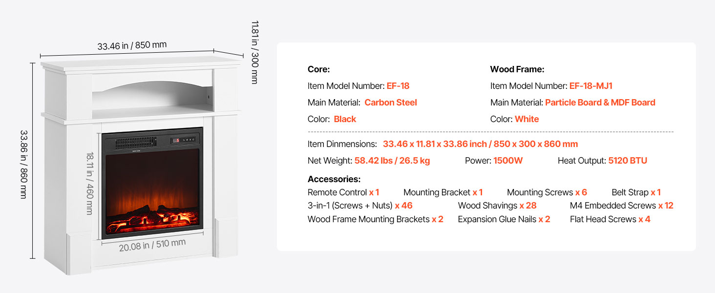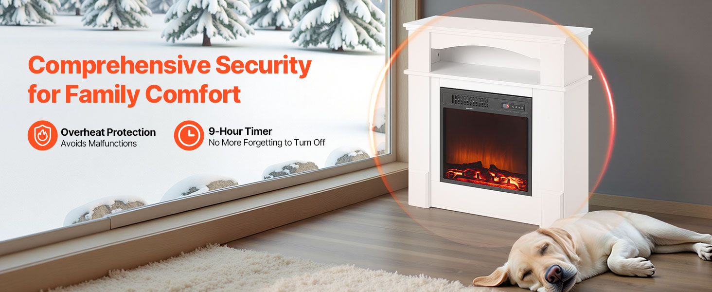 This electric fireplace is equipped with various safety mechanisms to reduce the risk of fire, providing a reliable and secure heating solution.