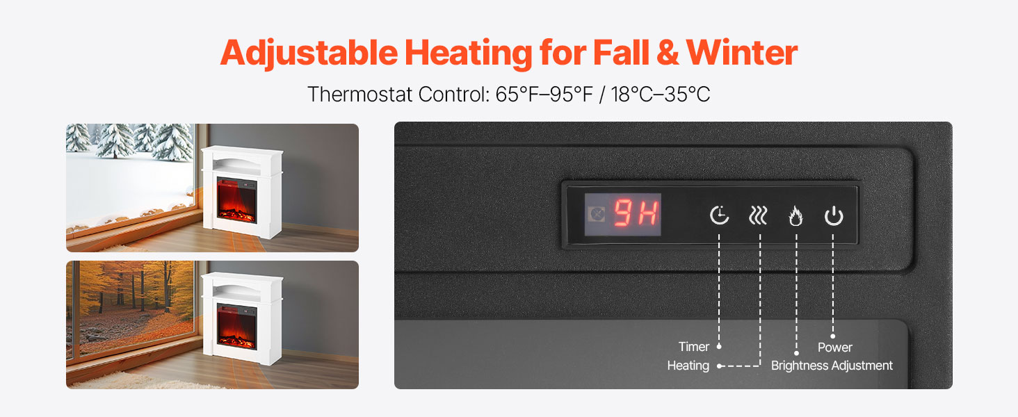 Authentic 3D Flame Effect: Enjoy a lifelike rolling flame display with illuminated logs and a calming fire, delivering a cozy visual ambiance. Adjustable brightness settings allow you to tailor the warmth and lighting to suit various occasions.
