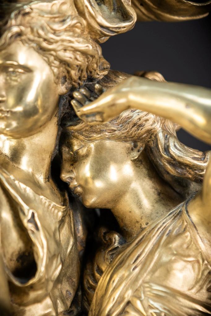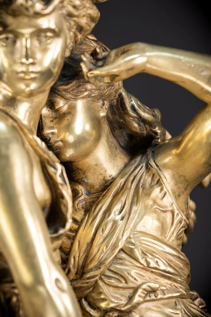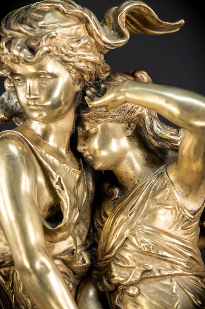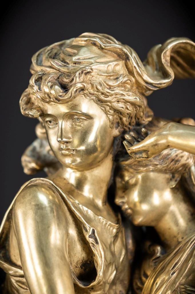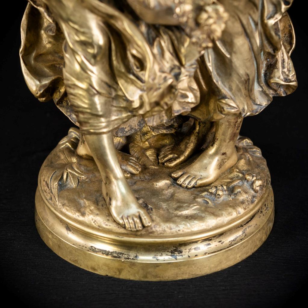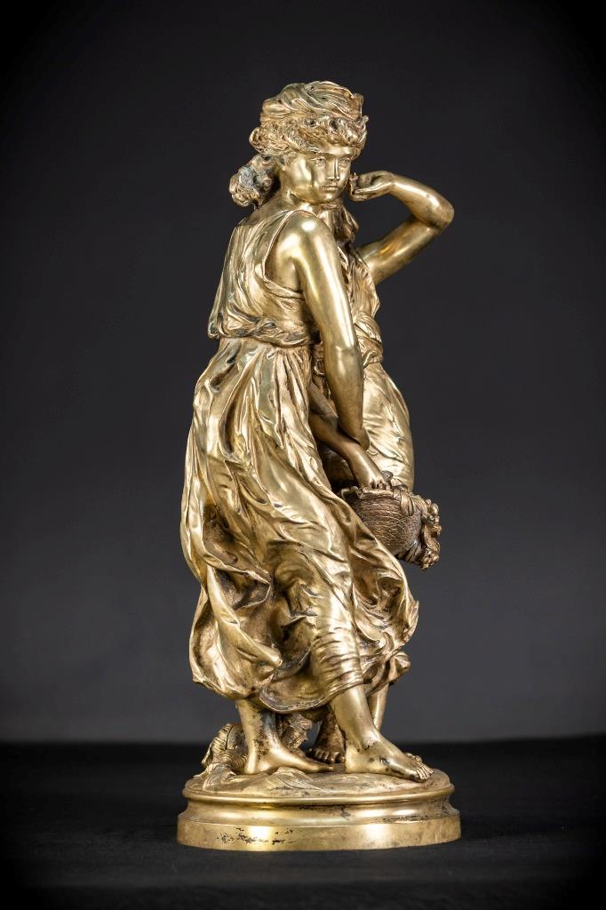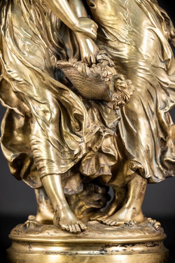 This is an antique bronze sculpture of the Two Sisters With a Basket of Flowers by Hippolyte Francois Moreau, a French sculptor (1832 - 1927). Signed H Moreau on the base. Dates back to the mid-to-late 1800s.