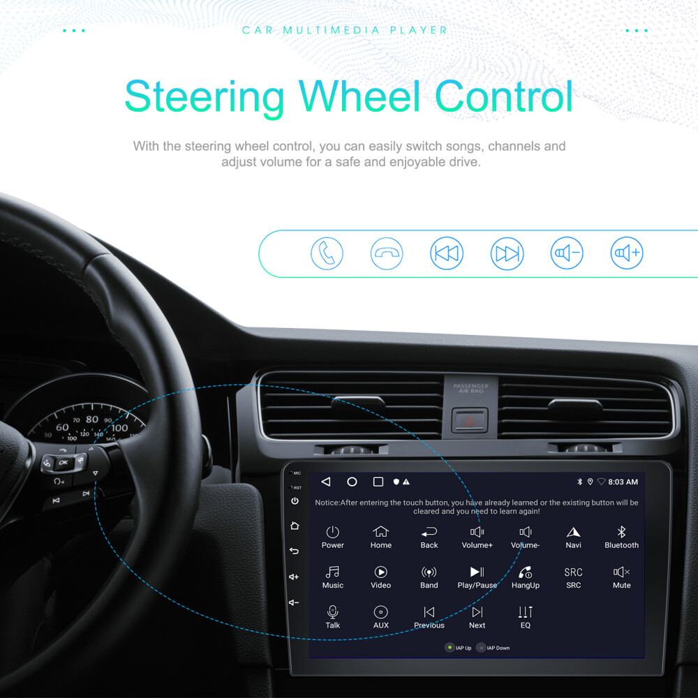 The steering wheel control function allows you to take easy control on switching songs, hands free calls, volume control, more convenient when you are driving, so that you will not be distracted by driving.