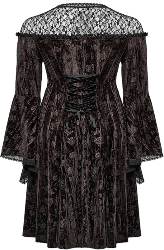 Goth Dark Night Rose Velvet Dress Punk Rave Kurzes Kleid für Frauen in braun/schwarz aus 95% Polyester, 5% Elasthan. Offiziell lizenziertes Produkt.