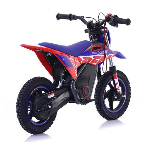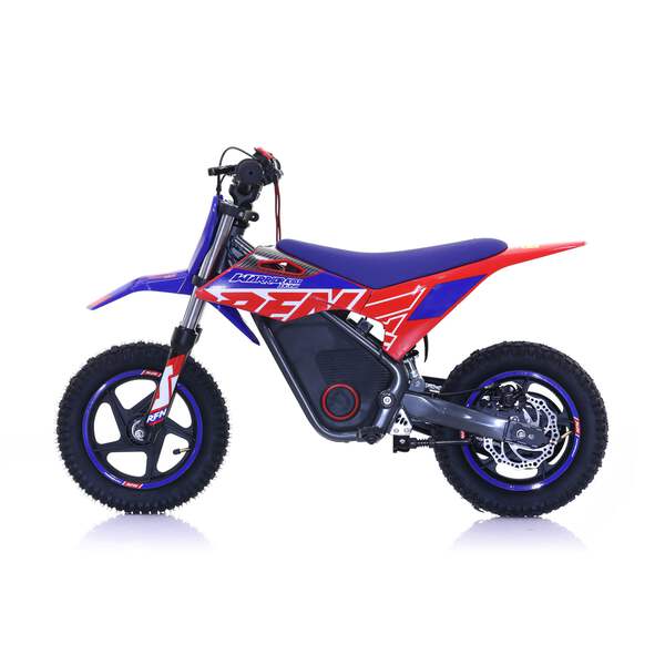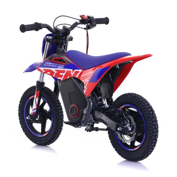 Introducing the Warrior E400, a premium 36V electric MX bike for kids aged 3-6. With efficient Direct Drive, it offers up to 11 miles or 2 hours of riding in Eco Mode. As confidence grows, parents can increase the power. Safety features include a lanyard Power Off, power lock cover, and chainguard. With vibrant colours, MX styling, and anti-slip tyres, it’s built to handle grass, mud, and sand. Ideal for children 90-110 cm tall, and up to 50 kg.