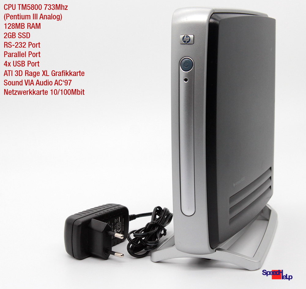 CPU Transmeta Crusoe TM5800 733 Mhz (Pentium 3 CPU analogica), 128 MB di RAM, SSD 2 GB,