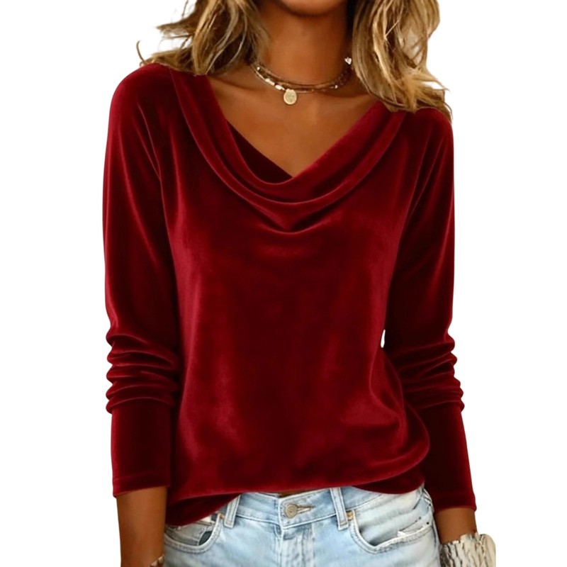 Vintage Velvet Tops for Women Blouse - Elegant Cowl Neck Holiday Party Clothes Fall Winter Long Sleeve Stylish Shirts